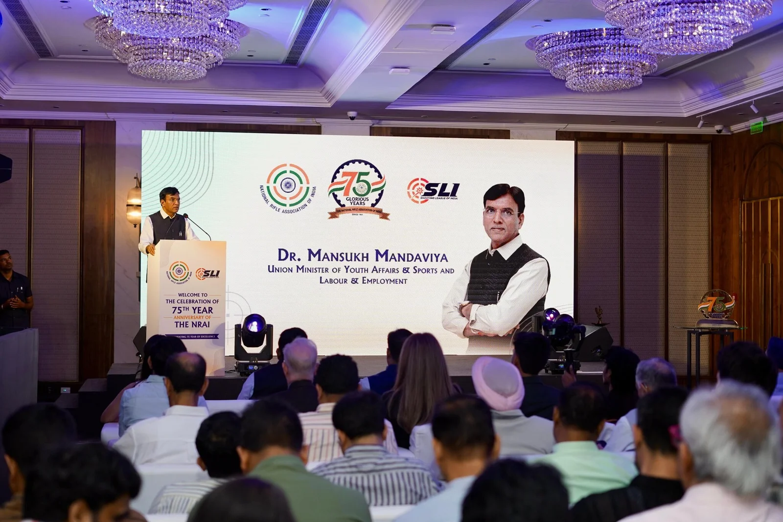 Union Minister Mansukh MandaUnion Minister Mansukh Mandaviya Announces National Shooting League, Unveils Athlete App at NRAI’s 75th Anniversaryviya Announces National Shooting League to Boost Competitive Ecosystem